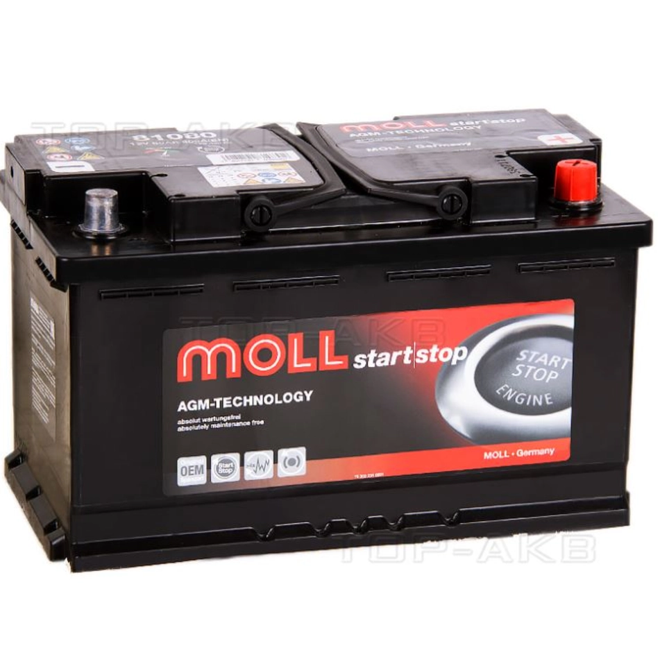 Аккумулятор MOLL L4.0 AGM 80Ач. 800А. (80080)